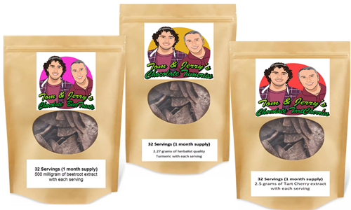 Studies have uniformly shown that muscle function will recover faster on the days after exercise if TartCherry is provided for several days prior to exercise. (Take away - Make Tom & Jerry’s Chocolate TartCherries part of your daily routine !).